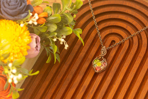 Floral Fused Glass and Copper Wire Statement Bar Pendant